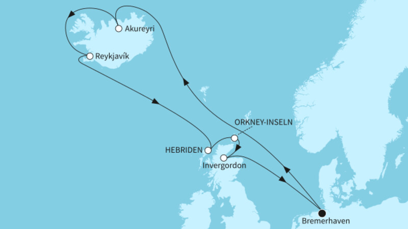 | 19.06. | Kirkwall (Orkney-Inseln) | 08:00 Uhr | 21:00 Uhr |